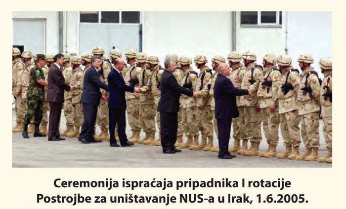 Juni 2005. – U misiju podrške miru u Iraku upućena prva rotacija Jedinice OS BiH za uništavanje NUS-a.