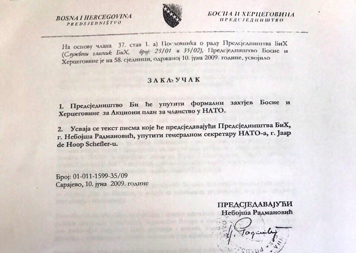Aplikaciju je potpisao tadašnji predsjedavajući Predsjedništva BiH Nebojša Radmanović.